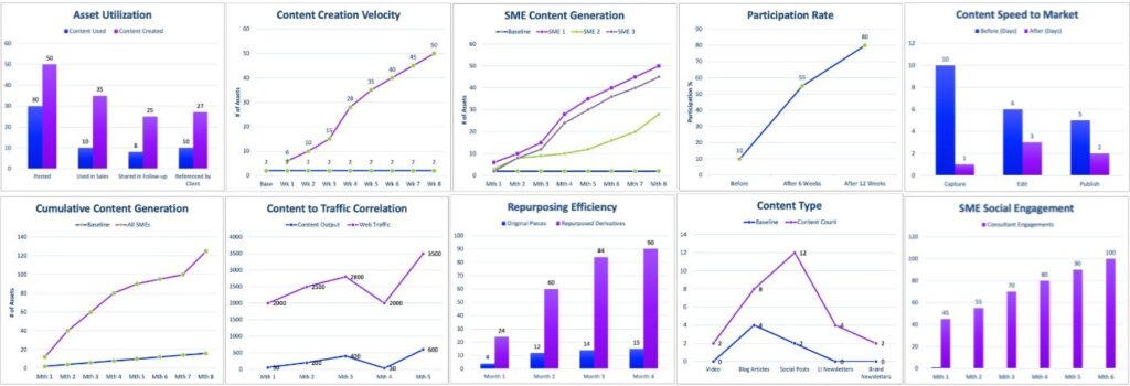 A flat line here could signal fading internal communication around content’s value. It may also show that SME enthusiasm is dropping or that there’s a gap in your production process.