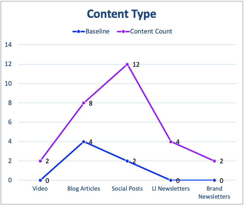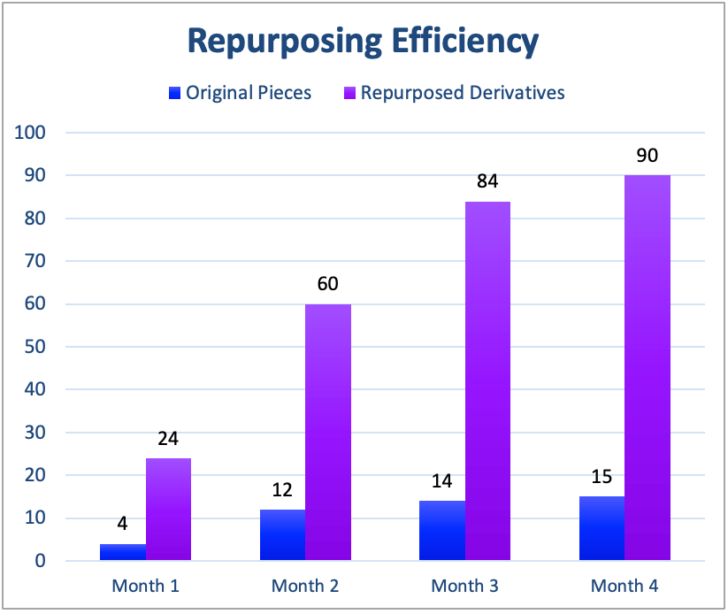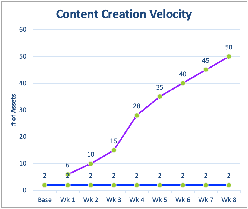 When measuring cumulative content generation, the goal is to see compound growth in your content library.