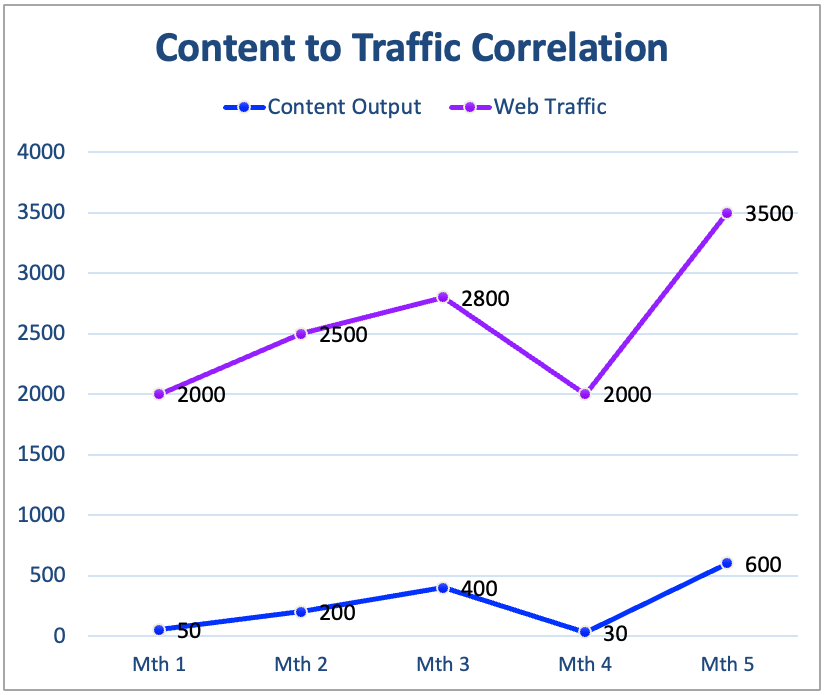 So, track the correlation, not causation, between content output (across all platforms) and website traffic.