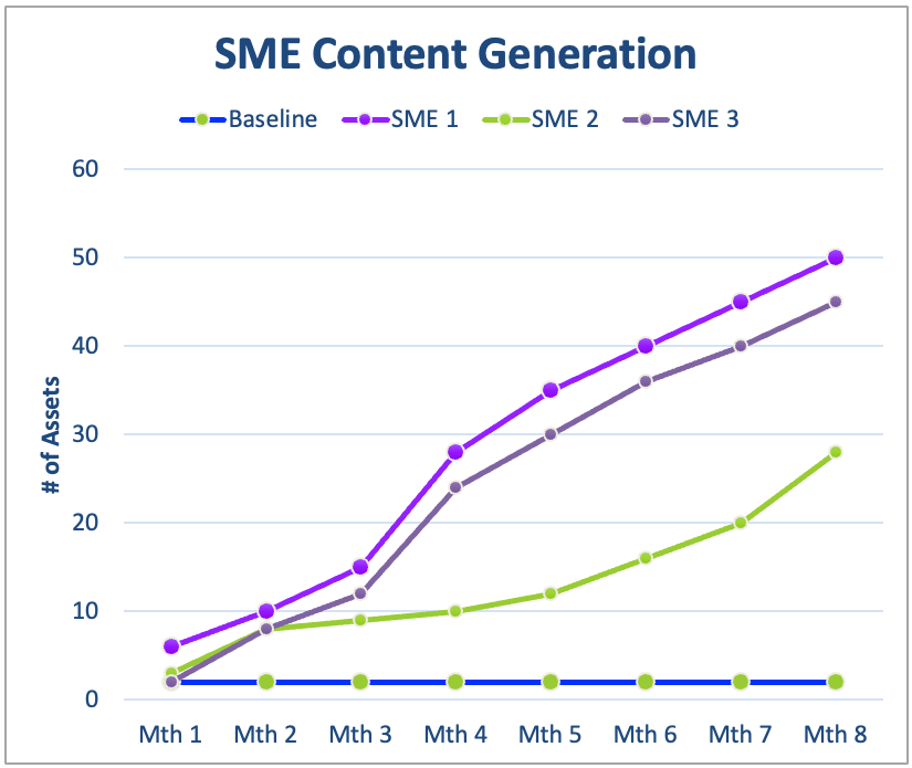 In measuring Subject Matter Experts’ contribution to content generation, of course, some SMEs will be prolific than others. They may have more to say, more experience, or simply be more willing to create content.